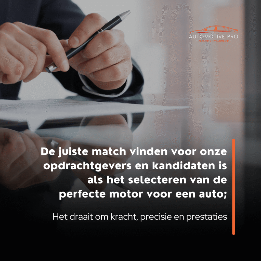 Wij zoeken actief naar geschikte kandidaten, zowel binnen ons uitgebreide netwerk als daarbuiten. Wanneer u via Automotive Pro een kandidaat ontvangt – telefonisch, per e-mail of in een persoonlijk gesprek – gaan wij uit van uw akkoord met onze voorwaarden.